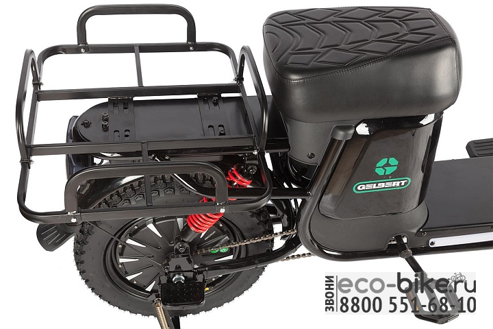 Gelbert Condor 2 предлагает комфортную посадку благодаря удобному широкому сиденью. Большой металлический багажник с креплениями идеально подходит для курьерского рюкзака, что делает его практичным выбором для перевозки грузов или пассажиров.